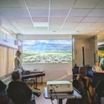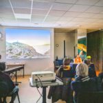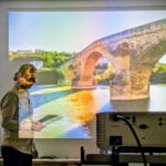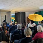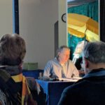 Die Reise begann in Albanien, begleitet von kontrastreichen Schwarz-Weiß-Bildern. Anschließend führte Dirk Karl, den Hirtenstock in der Hand, die Reisegruppe durch die farbenfrohen Eindrücke des Jakobswegs. Die dritte Station war Mallorca. Dort sprach der Autor – mit einem Cocktailglas in der Hand – über Geschichte und Landschaft der zauberhaften Insel, nahm aber auch das Verhalten deutscher Touristen kritisch in den Blick.