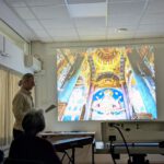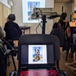 Immer wieder übernahm Dietmar Schlager den Vortrag einzelner Gedichte von Dirk Karl. Nach gut zwei Stunden erreichte die Reisegruppe schließlich Heidelberg, den letzten Halt der Reise. Begleitet von Robert Schumanns „Träumerei“ am Klavier wurde deutlich: Auch die eigene Stadt kann ein lohnendes Reiseziel sein. Art Selbachs Bilder wirkten dabei wie ein buntes Feuerwerk, Dirk Karls Gedanken taten ihr Übriges.